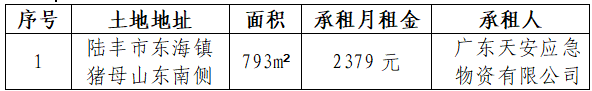 汕尾投資控股有限公司于2026年3月12日上午10:00,就陸豐市東海鎮(zhèn)豬母山東南側(cè)地塊公開(kāi)招租項(xiàng)目,在汕尾市城區(qū)站前橫四路市民服務(wù)廣場(chǎng)9樓909室競(jìng)租,現(xiàn)將本次公開(kāi)招租結(jié)果公告如下: 如對(duì)以上結(jié)果有任何異議,請(qǐng)于2026年3月24日上午11:00前以書(shū)面的形式實(shí)名反映,逾期將不再受理。 地址:汕尾市城區(qū)站前橫四路市民服務(wù)廣場(chǎng)9樓910室;聯(lián)系人/聯(lián)系電話:林先生 0660-3333083。